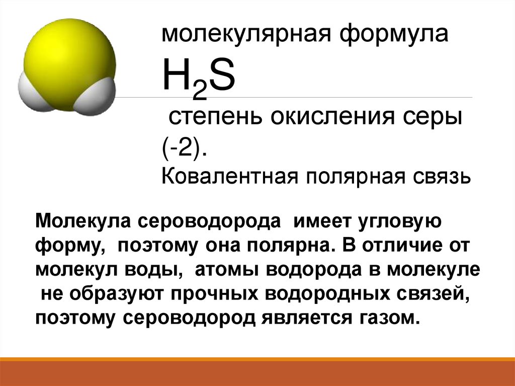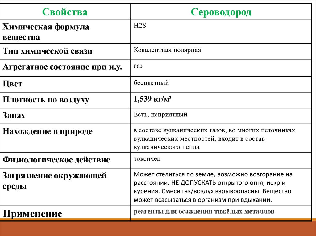 Сероводород — бесцветный газ с запахом тухлых яици сладковатым вкусом. Плохо растворим в воде,