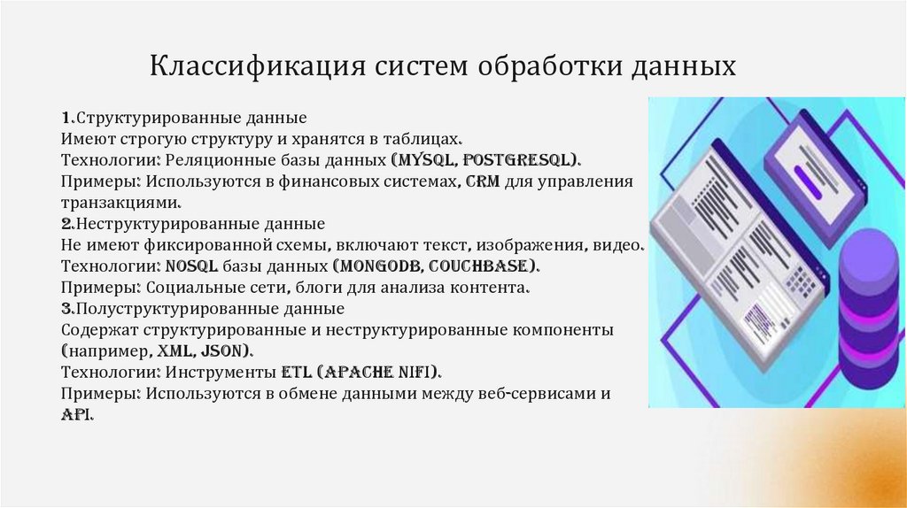 Презентация на тему классификация системобработки данных. Основные технологии и