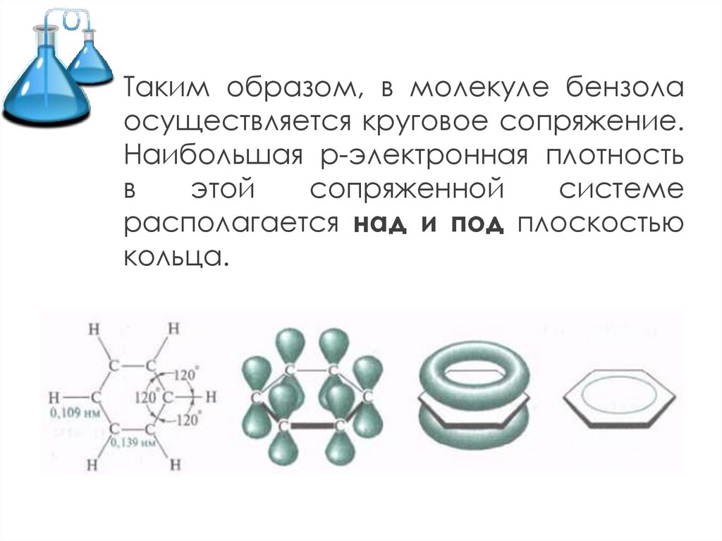 Таким образом, в молекуле бензолаосуществляется круговое сопряжение.
