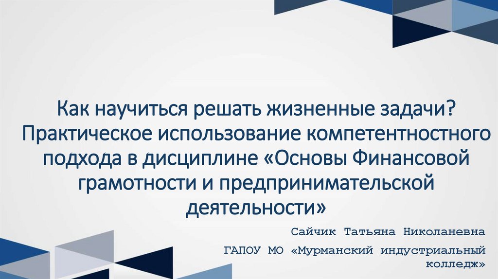 1. Как научиться решать жизненные задачи? Практическое использование компетентностного подхода в дисциплине «Основы Финансовой