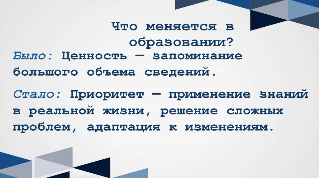 Стало: Приоритет — применение знаний