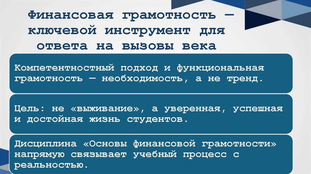 Финансовая грамотность —ключевой инструмент для