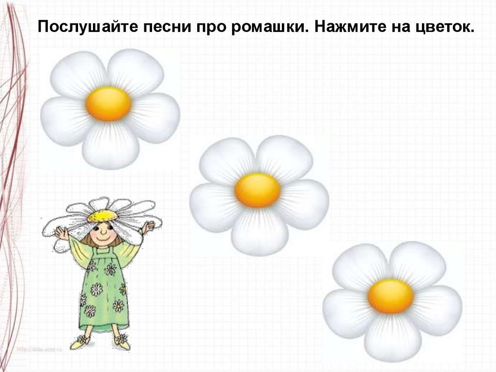 Послушайте песни про ромашки. Нажмите на цветок.21.