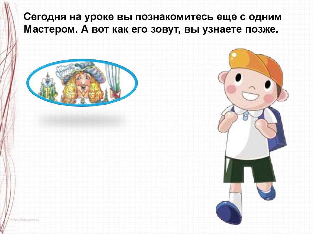 Сегодня на уроке вы познакомитесь еще с однимМастером. А вот как его зовут, вы узнаете позже.