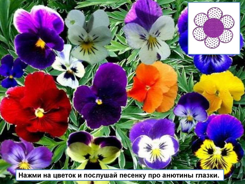 Нажми на цветок и послушай песенку про анютины глазки.29.