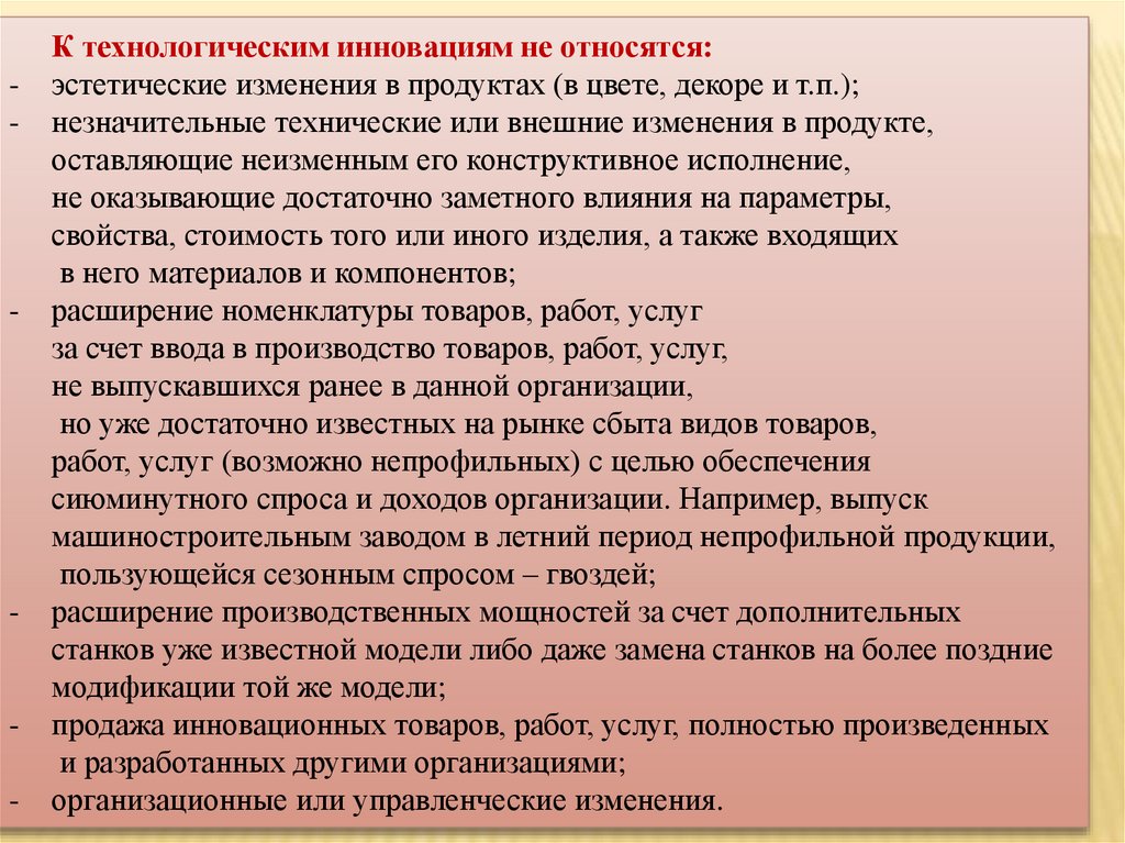 эстетические изменения в продуктах (в цвете, декоре и т.п.);