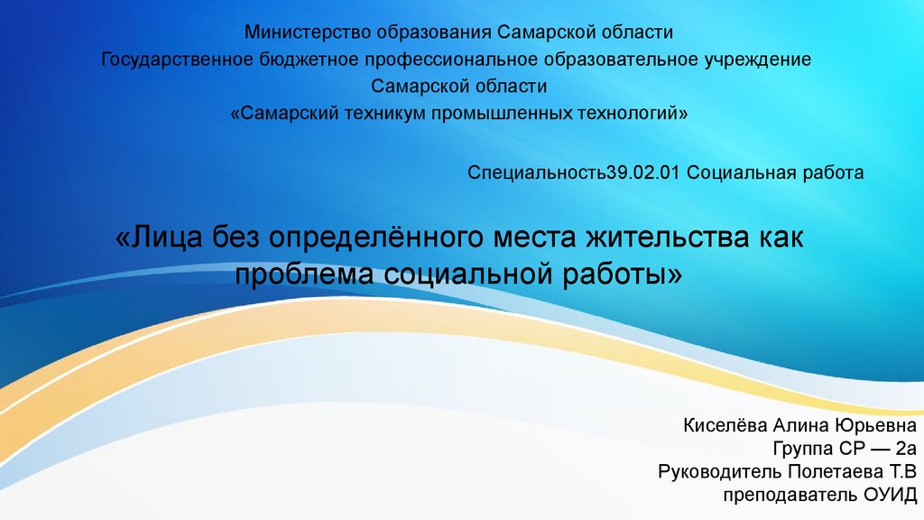 Министерство образования Самарской областиГосударственное бюджетное профессиональное образовательное учреждение