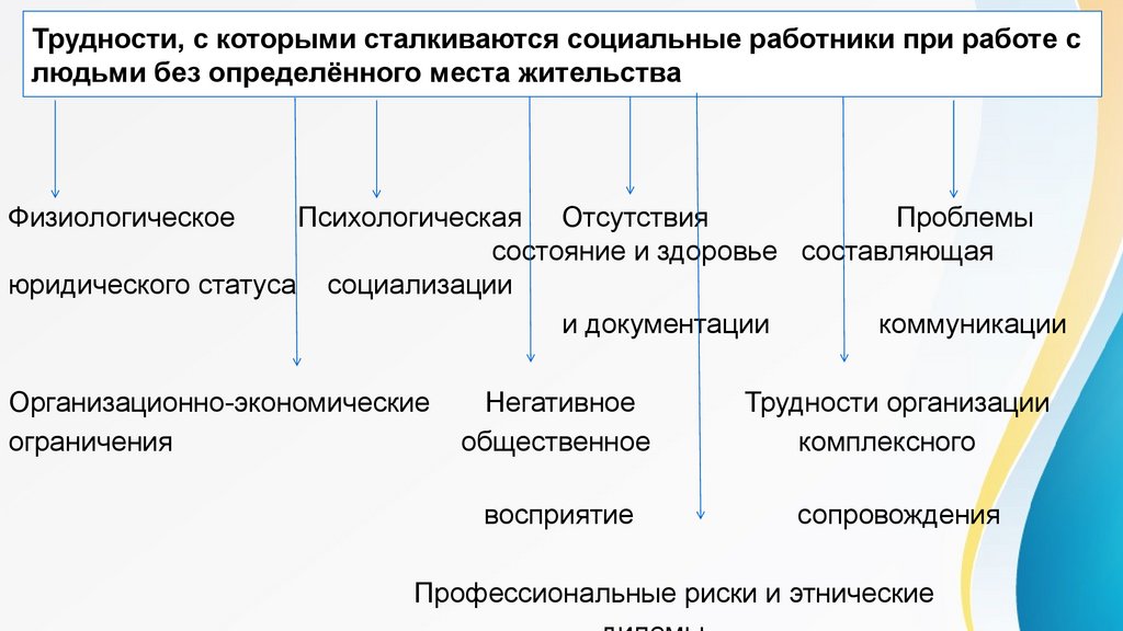 Трудности, с которыми сталкиваются социальные работники при работе слюдьми без определённого места жительства