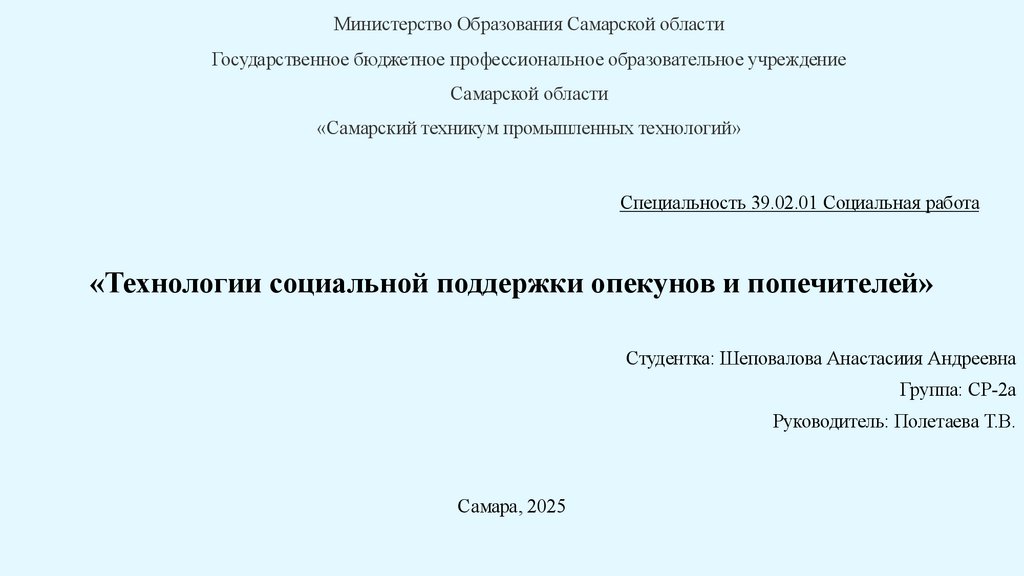 Министерство Образования Самарской областиГосударственное бюджетное профессиональное образовательное учреждение