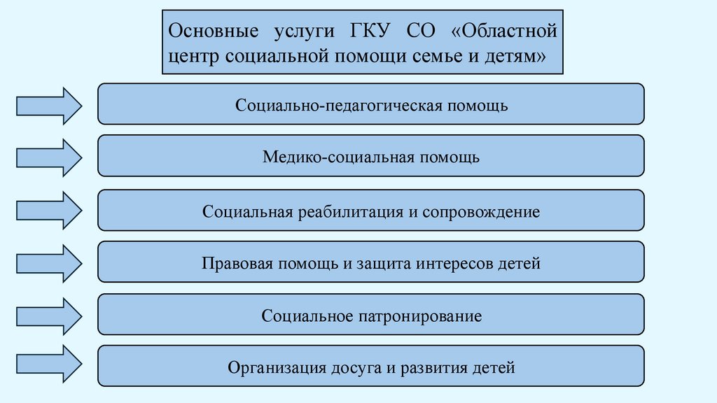 Основные услуги ГКУ СО «Областнойцентр социальной помощи семье и детям»