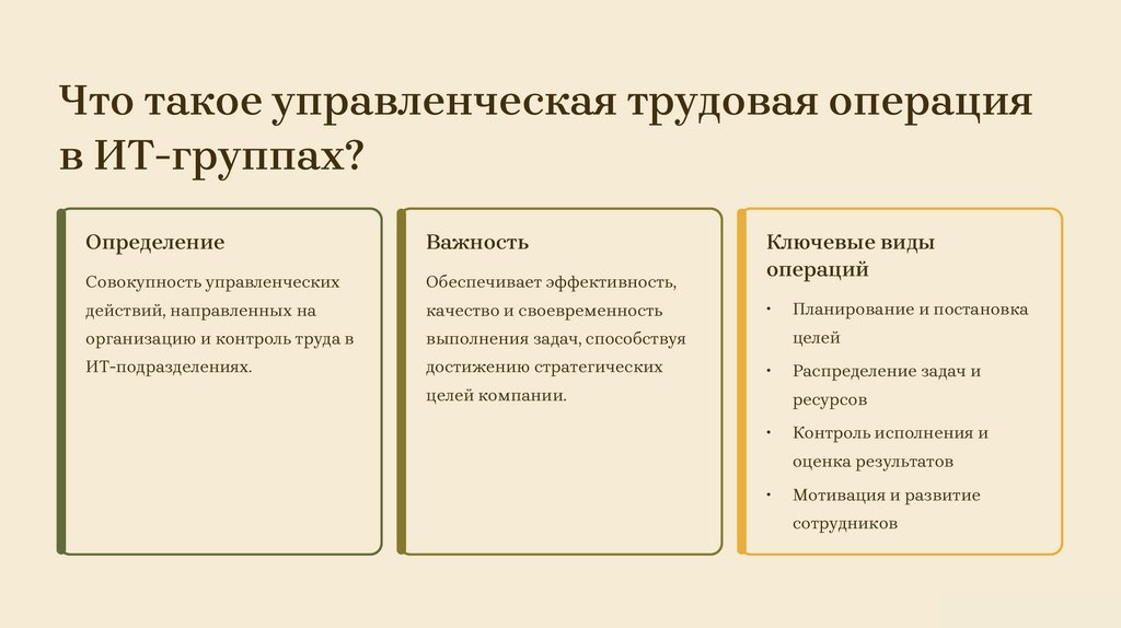 Что такое управленческая трудовая операцияв ИТ-группах?