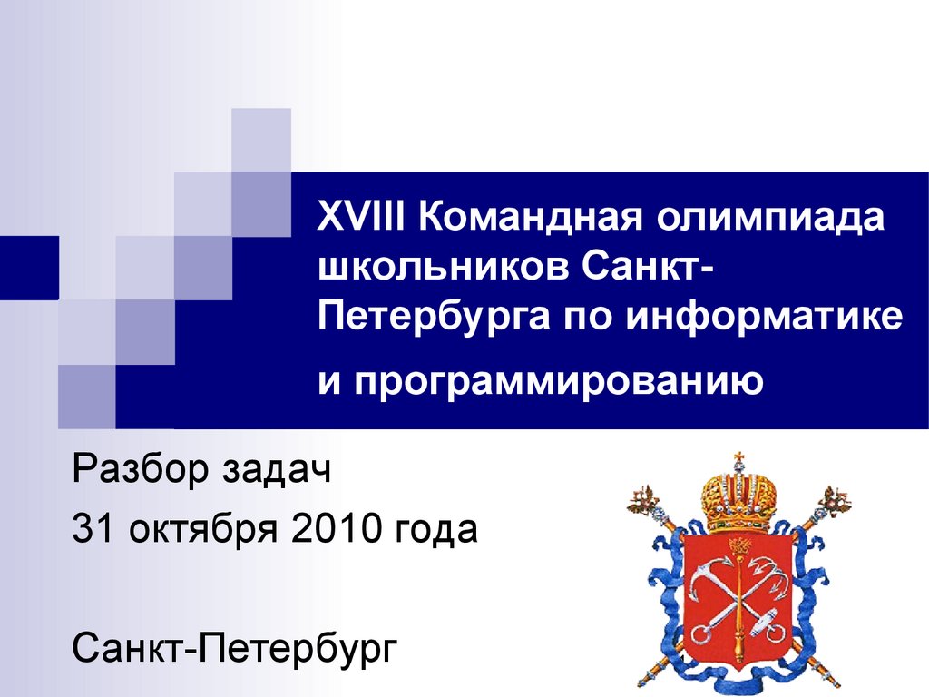 XVIII Командная олимпиадашкольников СанктПетербурга по информатике