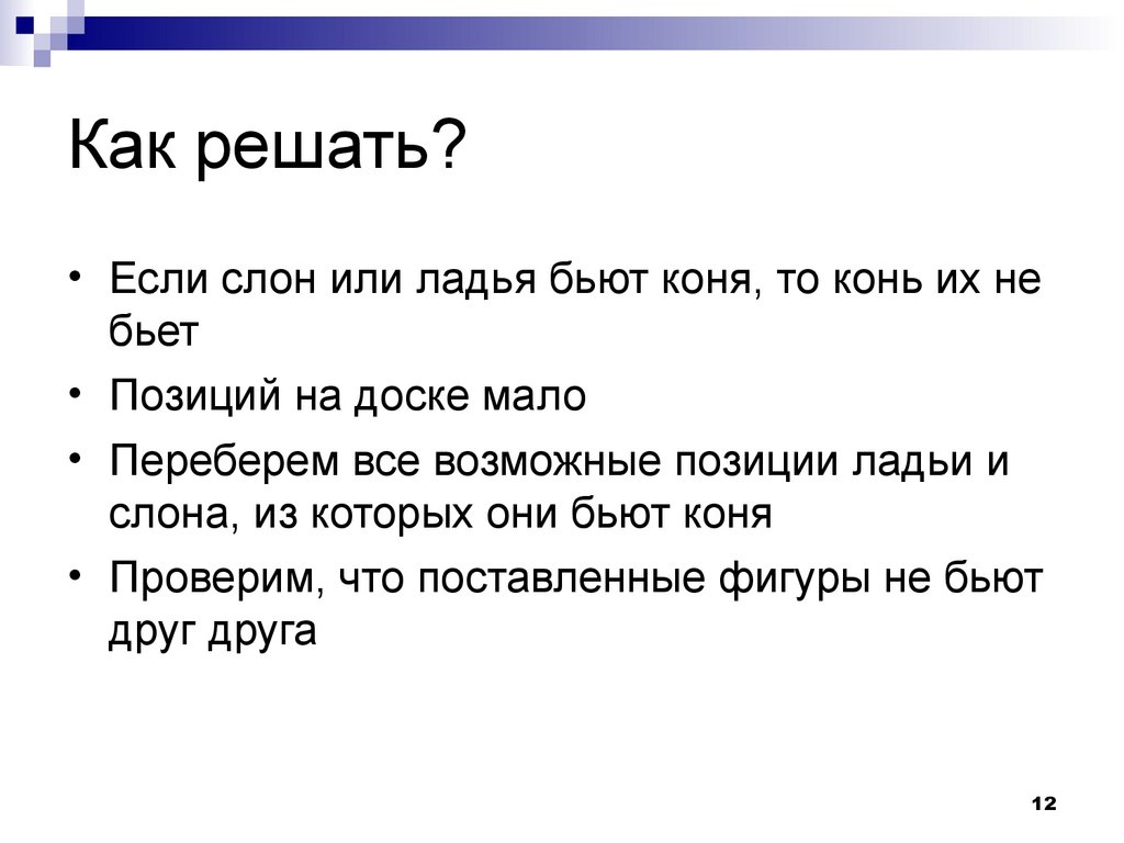Как решать?• Если слон или ладья бьют коня, то конь их не