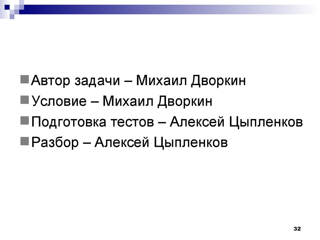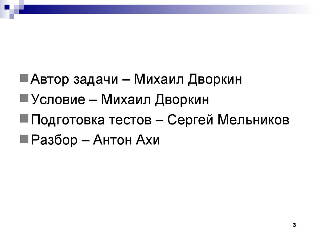 Автор задачи – Михаил ДворкинУсловие – Михаил Дворкин