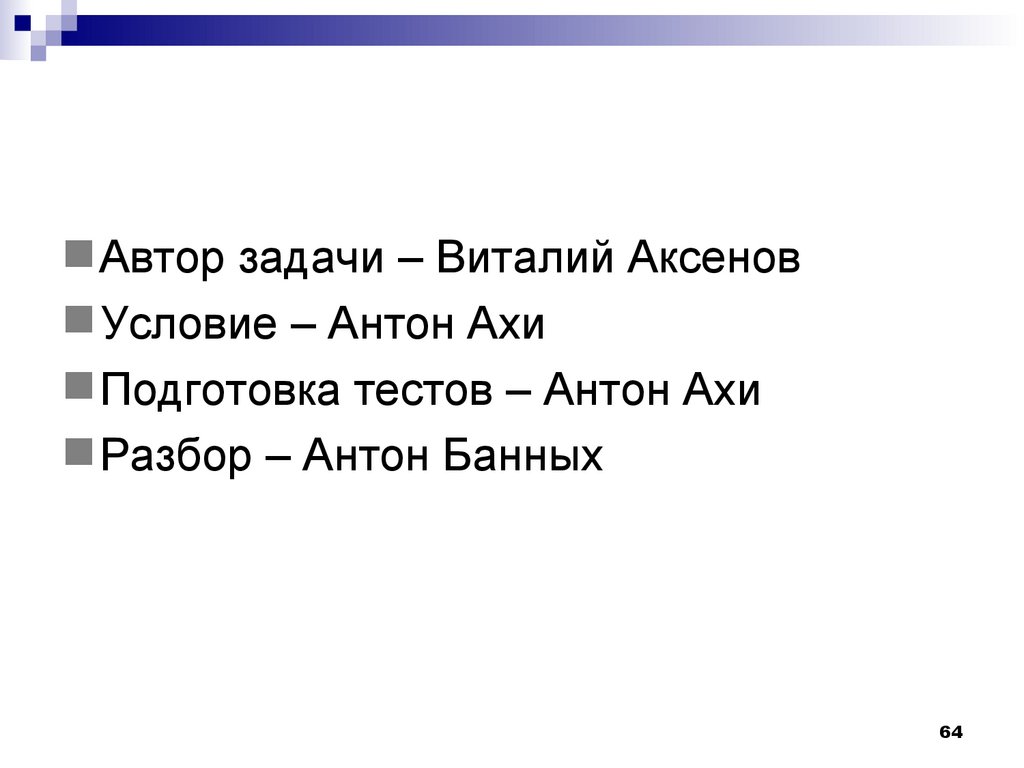 Автор задачи – Виталий АксеновУсловие – Антон Ахи