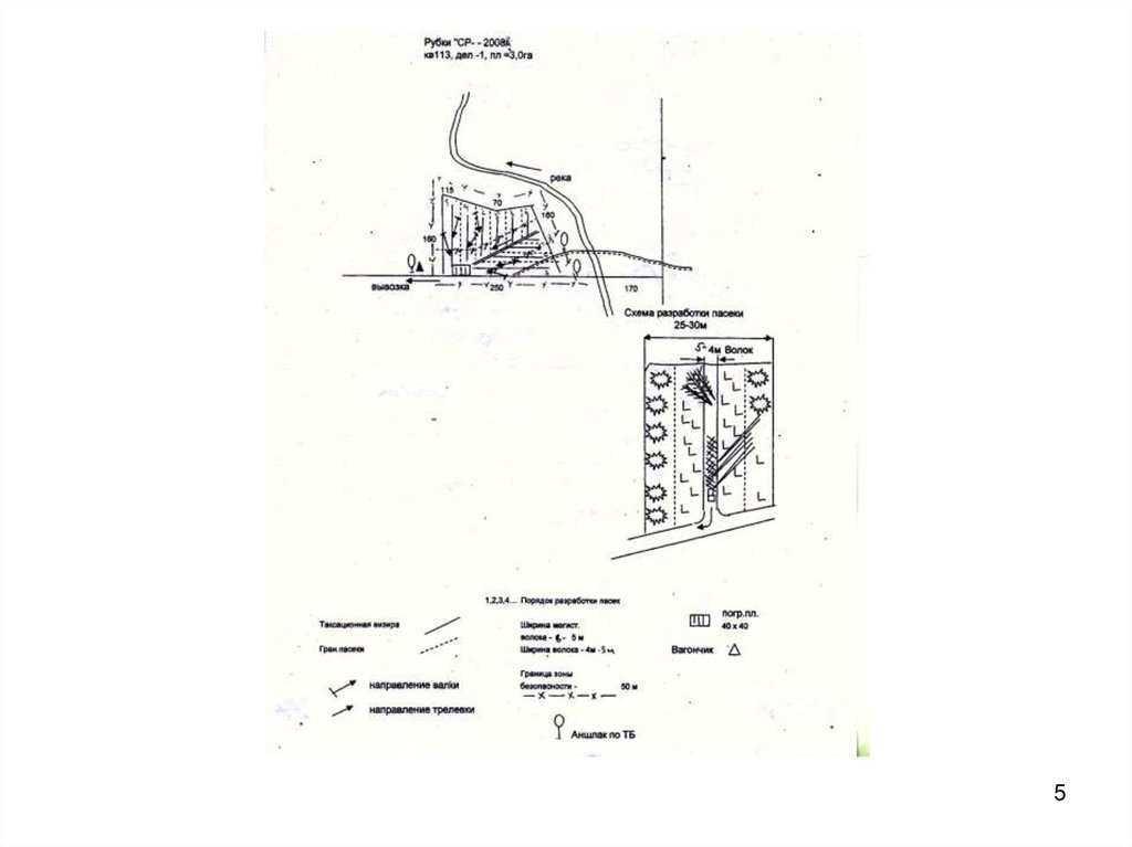 - Составить схему разработки лесосеки, указать