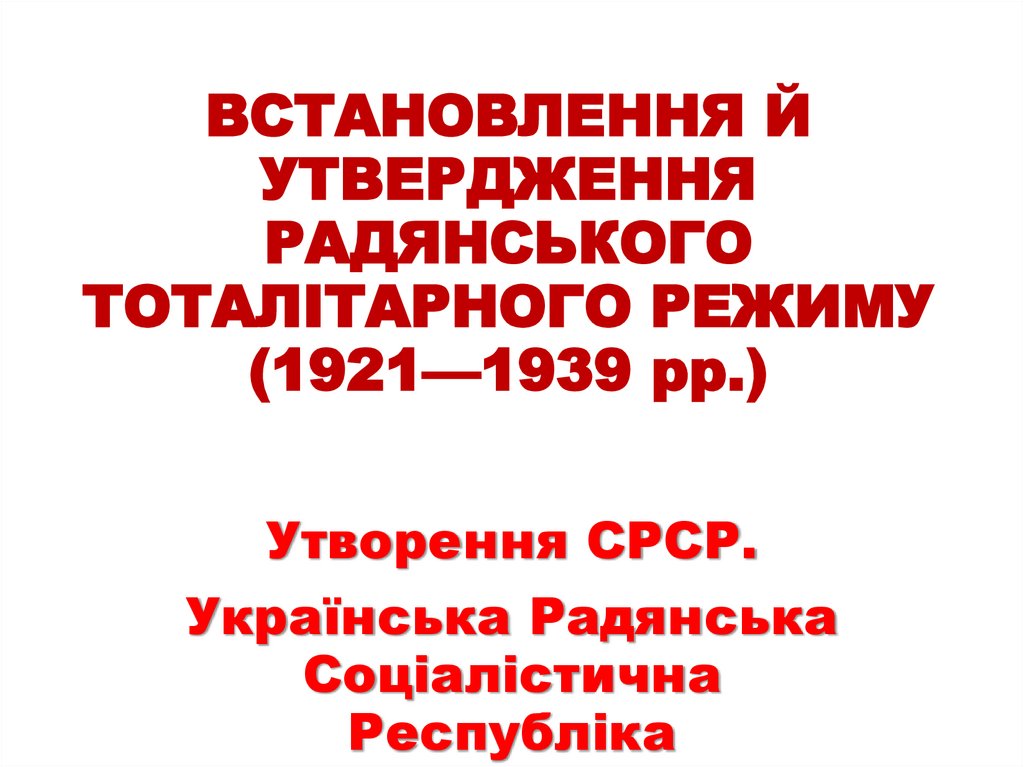 1. ВСТАНОВЛЕННЯ Й УТВЕРДЖЕННЯ РАДЯНСЬКОГО ТОТАЛІТАРНОГО РЕЖИМУ (1921—1939 рр.)