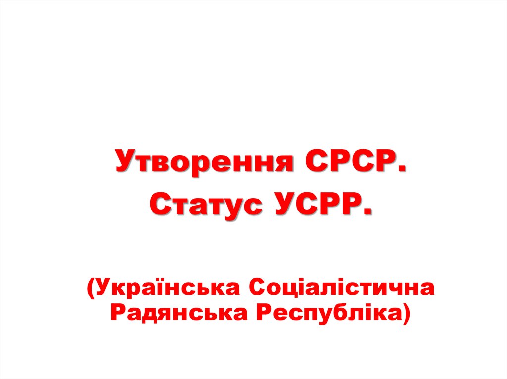 Утворення СРСР.Статус УСРР.