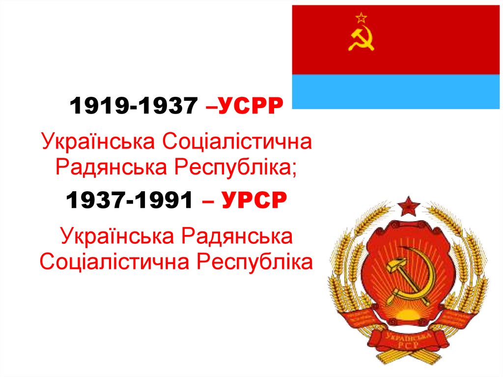 1919-1937 –УСРРУкраїнська Соціалістична