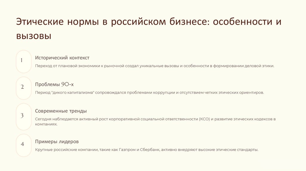 Переход от плановой экономики к рыночной создал уникальные вызовы и особенности в формировании деловой этики.