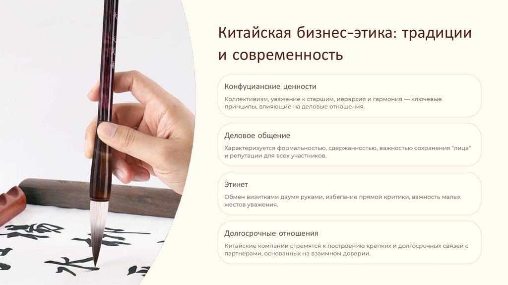 Обмен визитками двумя руками, избегание прямой критики, важность малых