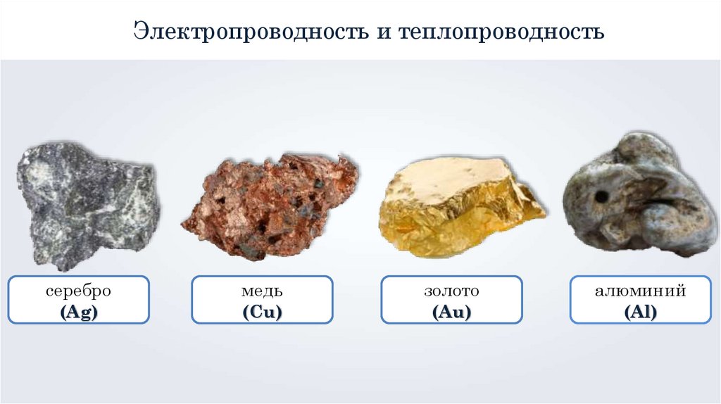 Электропроводность и теплопроводностьВсе металлы хорошо проводят электрический ток и