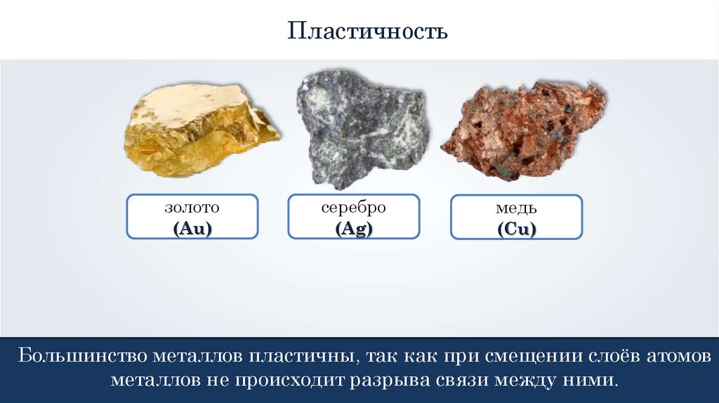 Большинство металлов пластичны, так как при смещении слоёв атомов