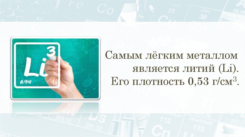 Самым лёгким металломявляется литий (Li).