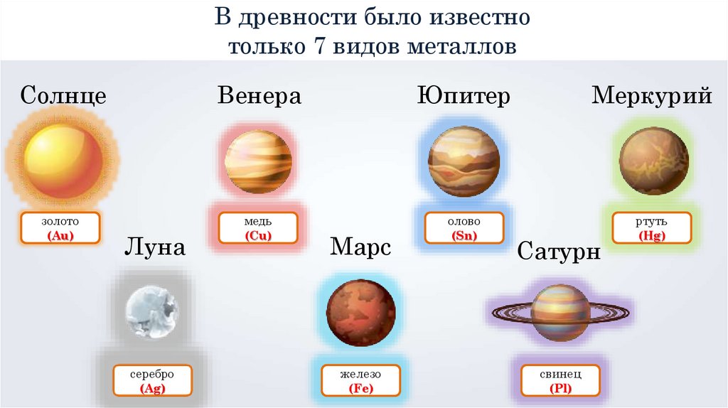 В древности было известнотолько 7 видов металлов