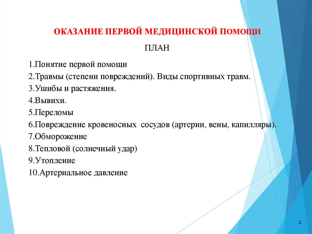 ОКАЗАНИЕ ПЕРВОЙ МЕДИЦИНСКОЙ ПОМОЩИПЛАН