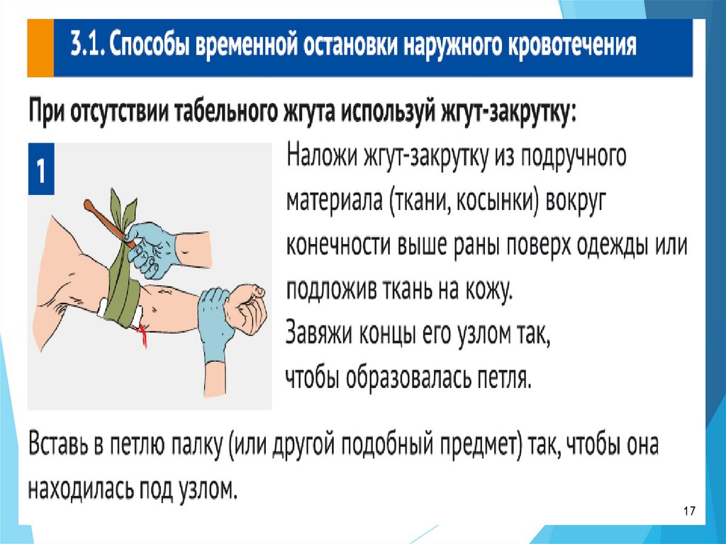 руками той части бинта, которая будет наложена на рану, чтобы не занести
