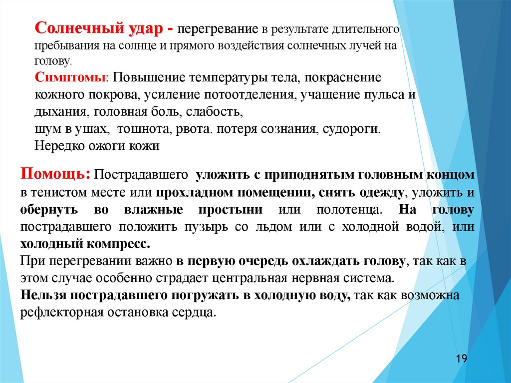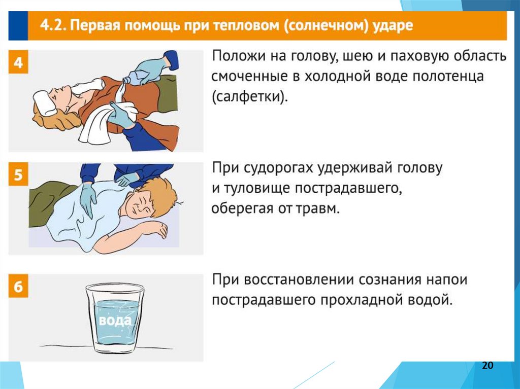При перегревании важно в первую очередь охлаждать голову, так как в