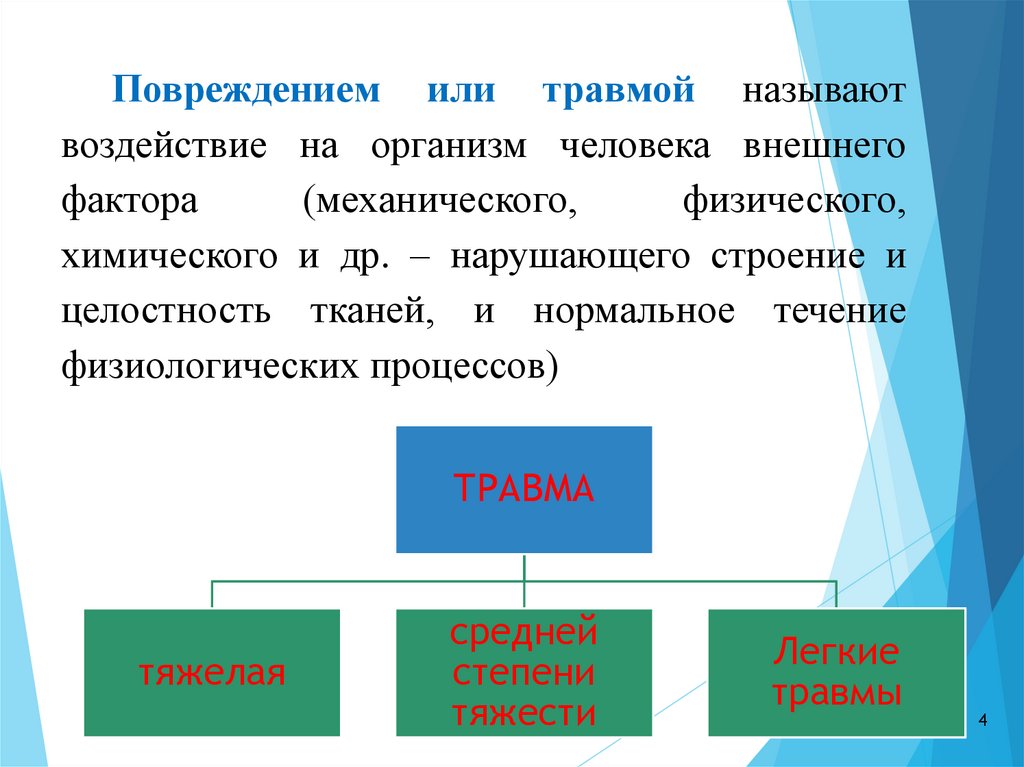 Повреждением или травмой называютвоздействие на организм человека внешнего