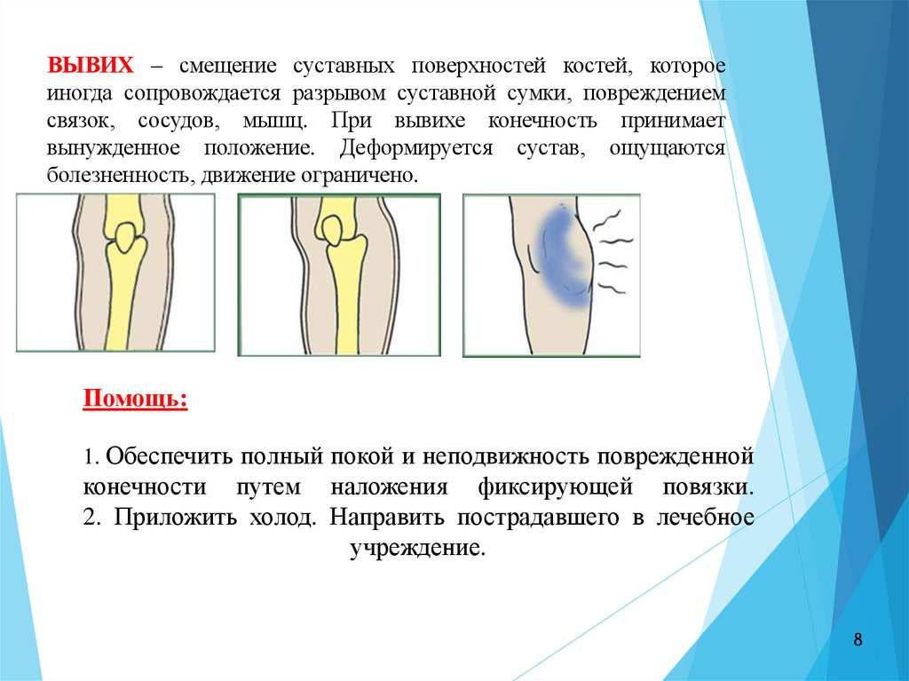 ВЫВИХ – смещение суставных поверхностей костей, котороеиногда сопровождается разрывом суставной сумки, повреждением