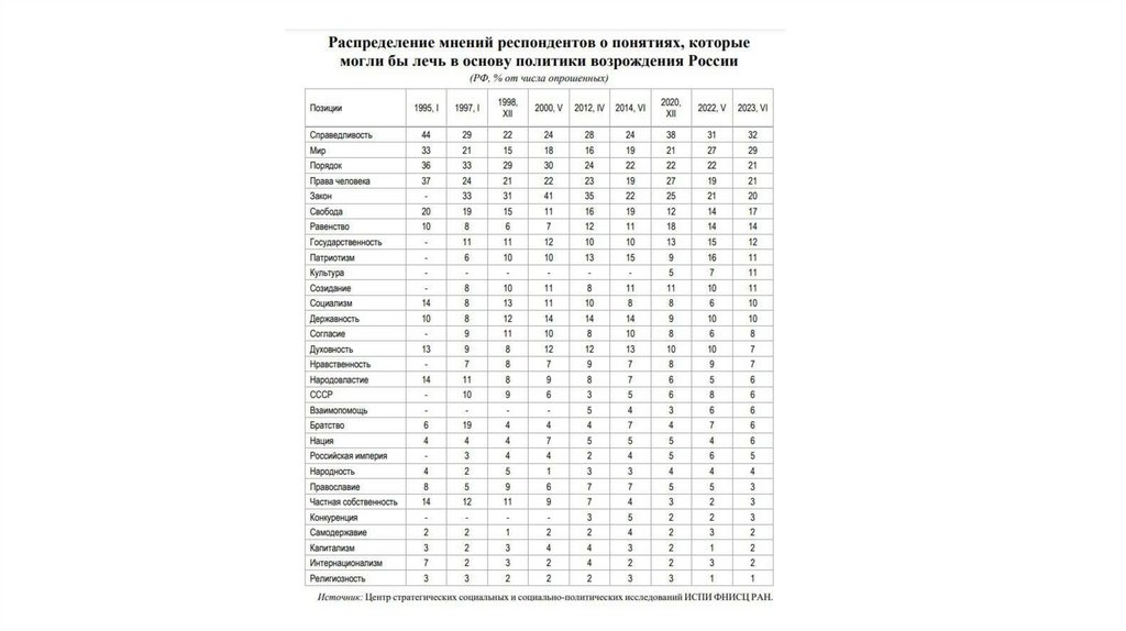 Базовые основания для развития в интересах большинства - единство вмногообразии (на основе данных ИСПИ РАН).
