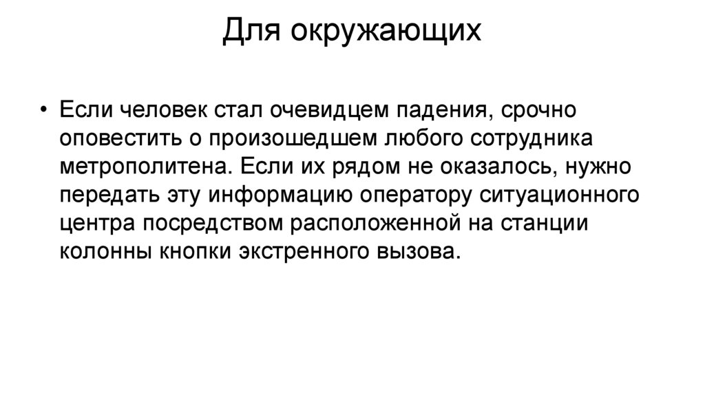 Для окружающих• Если человек стал очевидцем падения, срочно