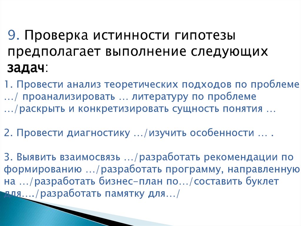 9. Проверка истинности гипотезыпредполагает выполнение следующих