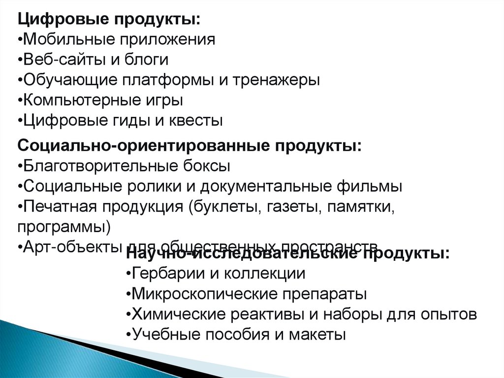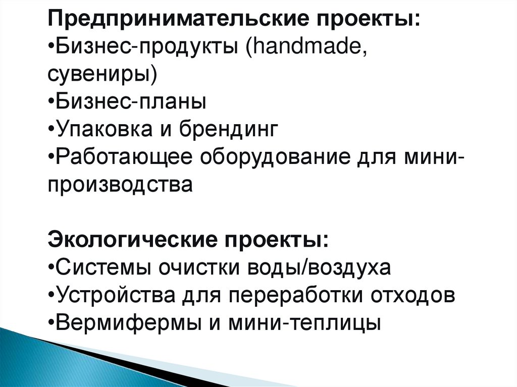 Предпринимательские проекты:•Бизнес-продукты (handmade,