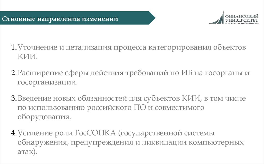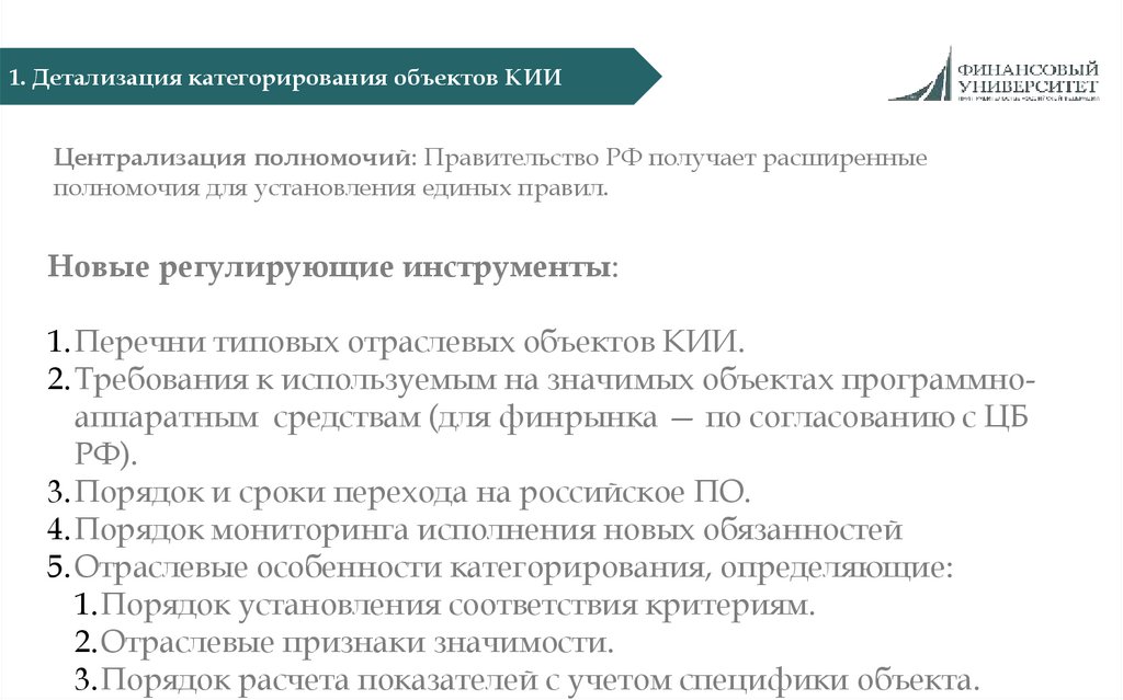 1. Детализация категорирования объектов КИИЦентрализация полномочий: Правительство РФ получает расширенные