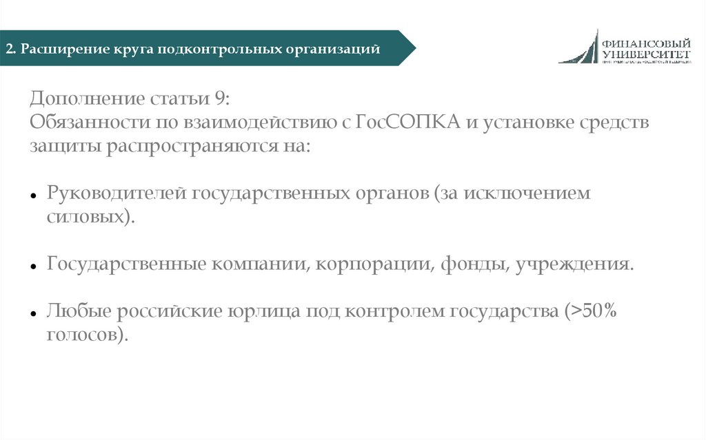 2. Расширение круга подконтрольных организацийДополнение статьи 9:
