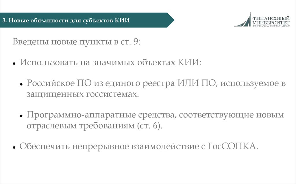3.Введение новых обязанностей для субъектов КИИ, в том числе