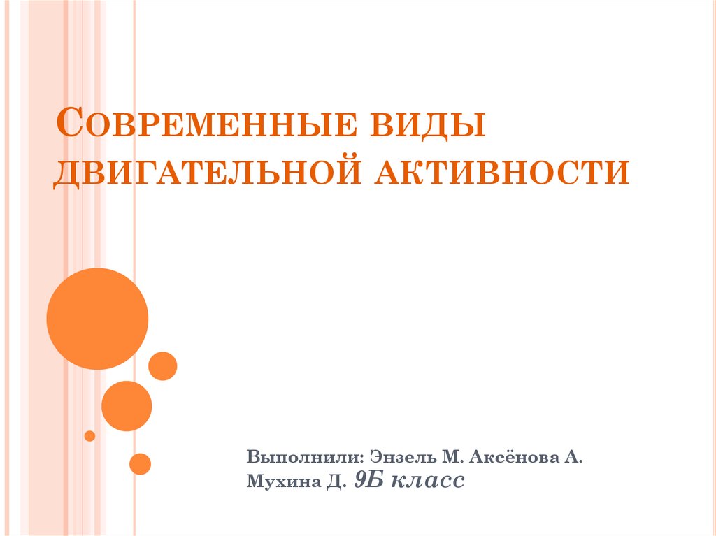 СОВРЕМЕННЫЕ ВИДЫДВИГАТЕЛЬНОЙ АКТИВНОСТИ