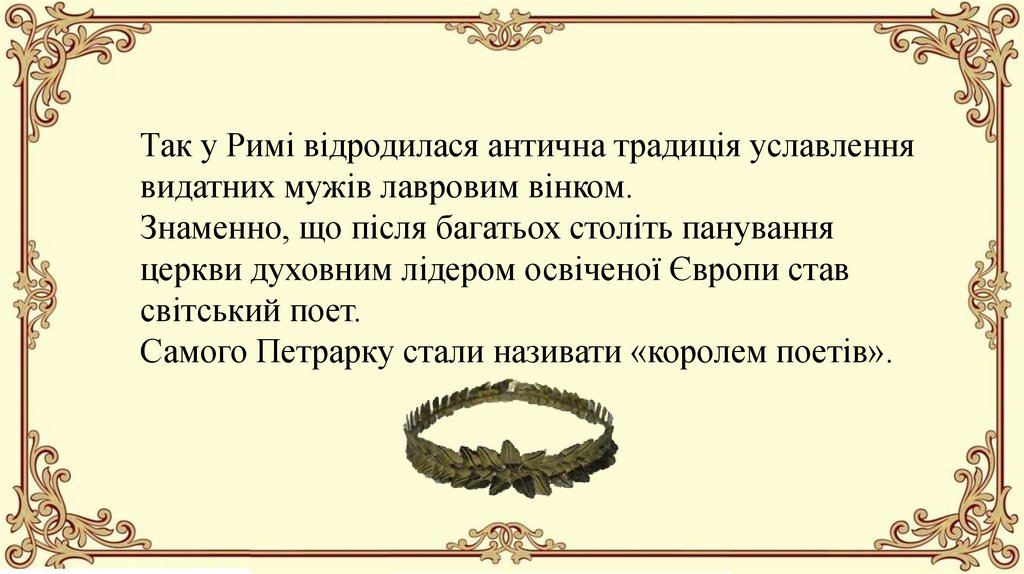 лаврами прикрашали голови імператорівпереможців, Петрарка був увінчаний