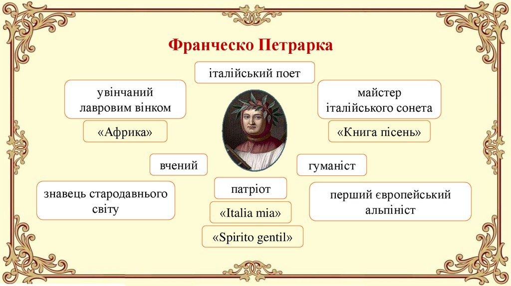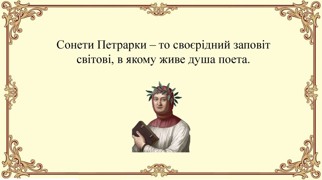 Сонети Петрарки – то своєрідний заповітсвітові, в якому живе душа поета.