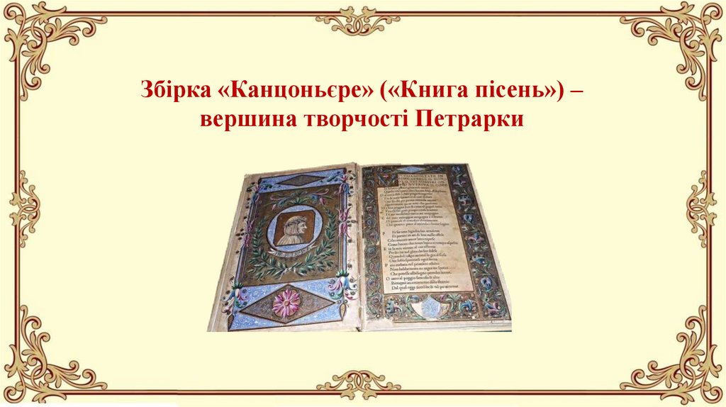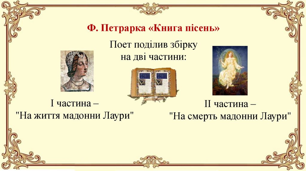Ф. Петрарка «Книга пісень»Поет поділив збірку