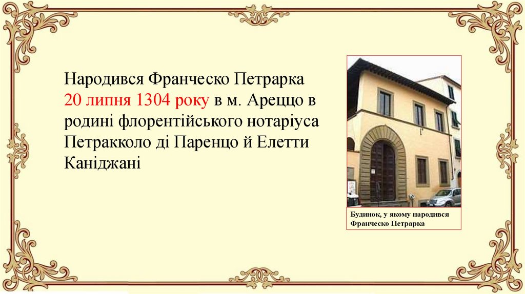 Народився Франческо Петрарка20 липня 1304 року в м. Ареццо в