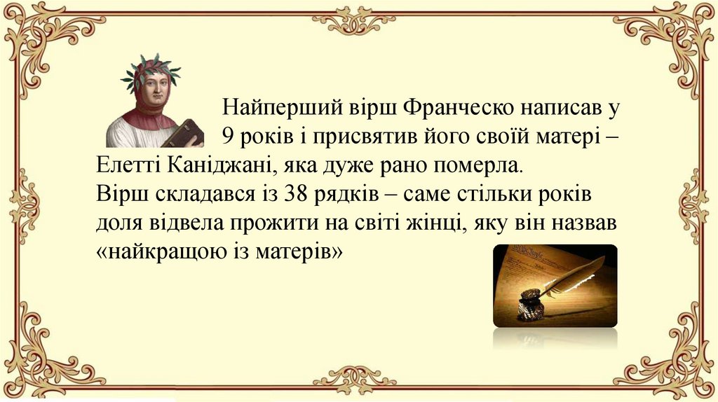 Найперший вірш Франческо написав у9 років і присвятив його своїй матері –