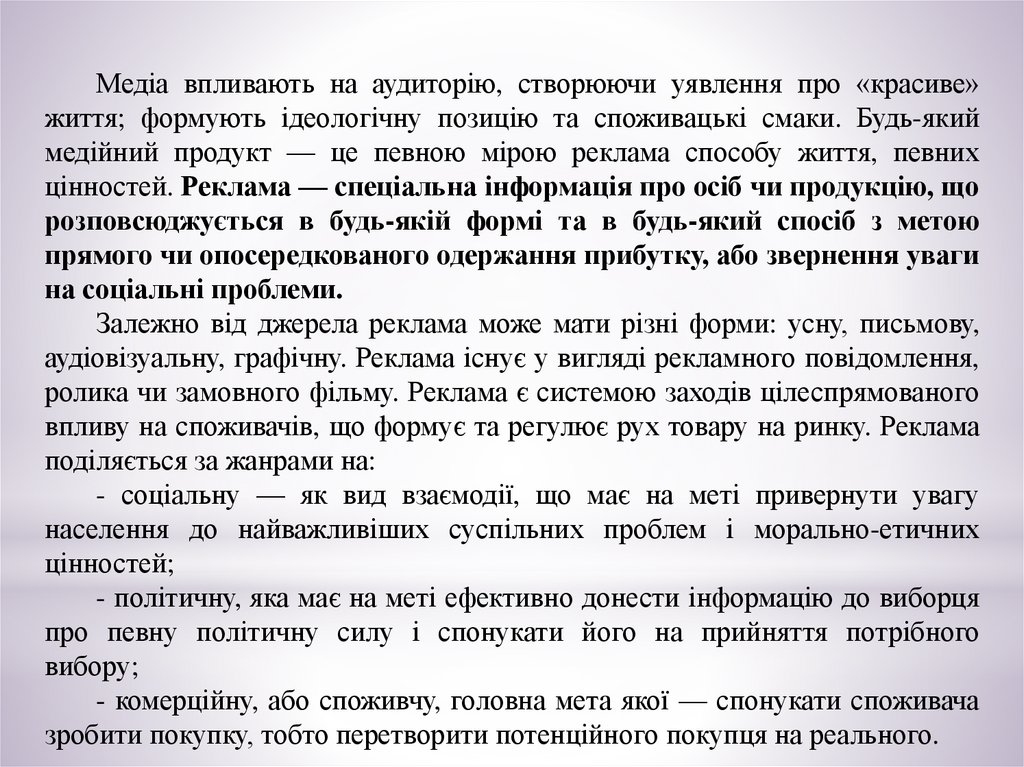 (інформацію) для цих аудиторій, а отже, фінансово підтримують медіа,
