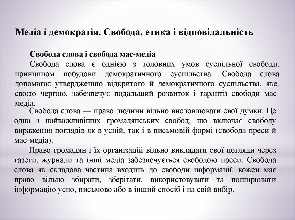 Медіа і демократія. Свобода, етика і відповідальністьСвобода слова і свобода мас-медіа