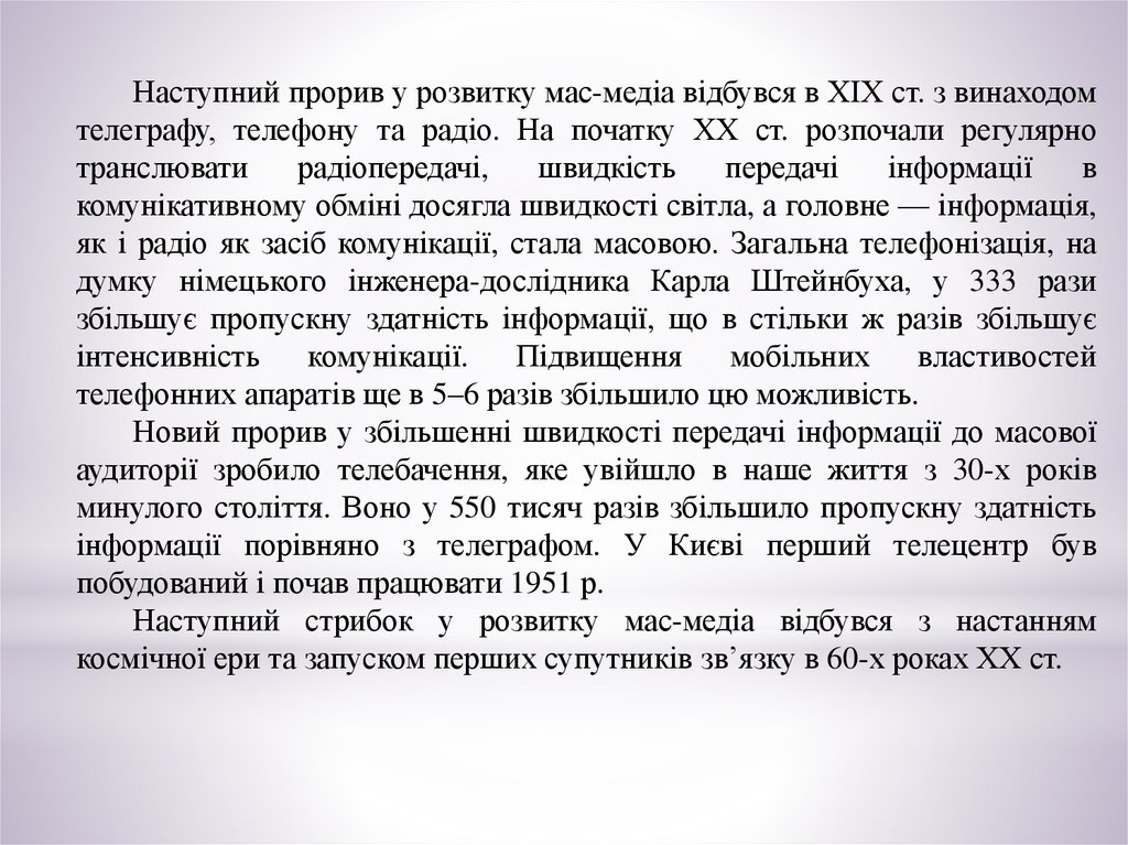 масовість аудиторії. Ці дві обставини роблять мас-медіа дуже впливовими.